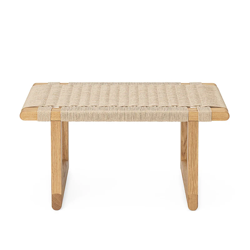 The BM0489S Table Bench is, with its woven paper cord seat, a new interpretation of BĂžrge Mogensenâs minimalist Table Bench from 1958. The design is characterised by its understated elegance, where the solid oak is softened by rounded edges and woven paper cord in a basket weave pattern. BM0489 comes in two sizes, and this long version is a versatile piece of furniture that works in a hallway, at the foot of a bed or as a sofa or side table in the living room.
