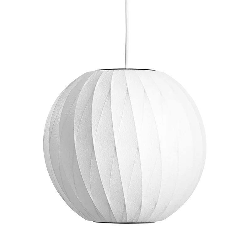 Without question, the George Nelson Bubble Lamp Crisscross Ball Pendant George Nelson designed the first lamps in 1947. These lamps with their simple sculptural shapes are constructed of an innovative taut plastic that coats a steel wire-frame. Nelson's unique design and ingenious use of materials prove to eliminate glare and provide an abundant, yet diffused light. A quality which alone is unique to this material.
