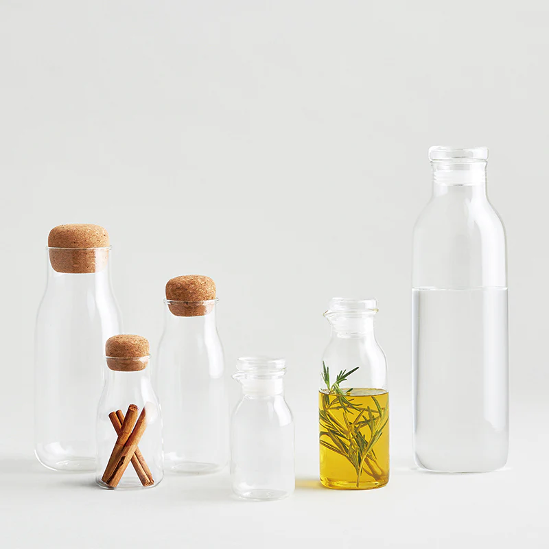 Coloured by the contents inside, the beautiful glass and round organic form bring elegance to your kitchen and table. It is easy to dressings into the carafe or even use as a milk jug, and the slim bottle fits in the side pocket of the refrigerator. The lid comes with a silicone ring for tight sealing. Made of heat-resistant glass, it is easy to maintain clean.