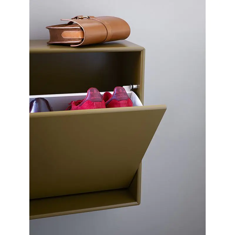 HIDE fits perfectly for the small entrance where storing shoes, gloves and other accessories is a must to keep everything in order. HIDE is a versatile shoe cabinet with a flip-drawer and interior plastic mat as protection from filths and scratches.