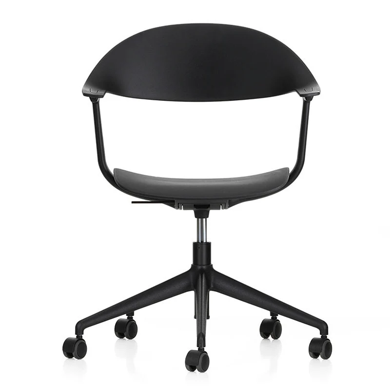 The slender mechanism is an integral part of Myntâs design and plays a key role in the chairâs understated, home-like aesthetic. The seat and backrest are available in wood veneer or recycled polyamide made from 100% post-industrial sources and can be replaced or exchanged for a different material or colour option. In the variant with a four-star base, glides can be replaced with castors and vice versa â Mynt fulfils the relevant office standards with both versions.